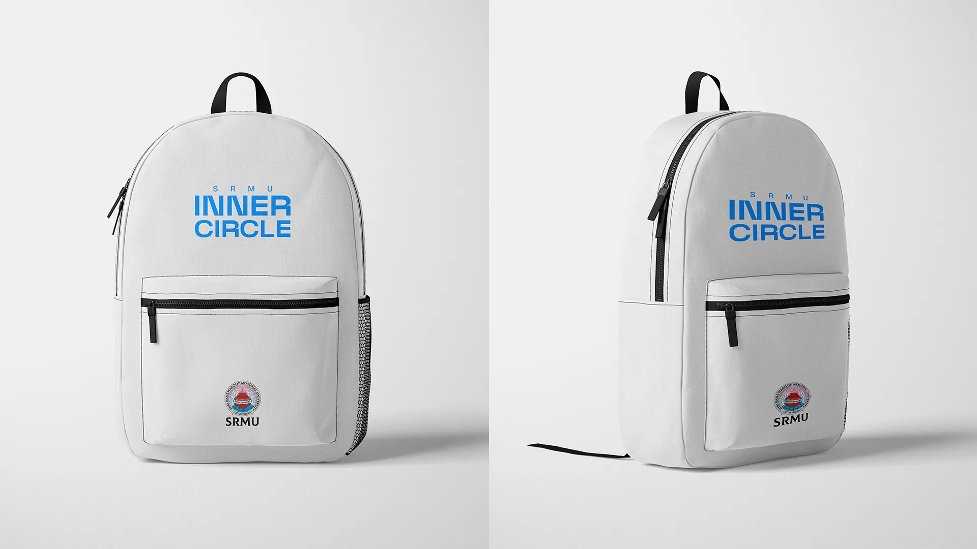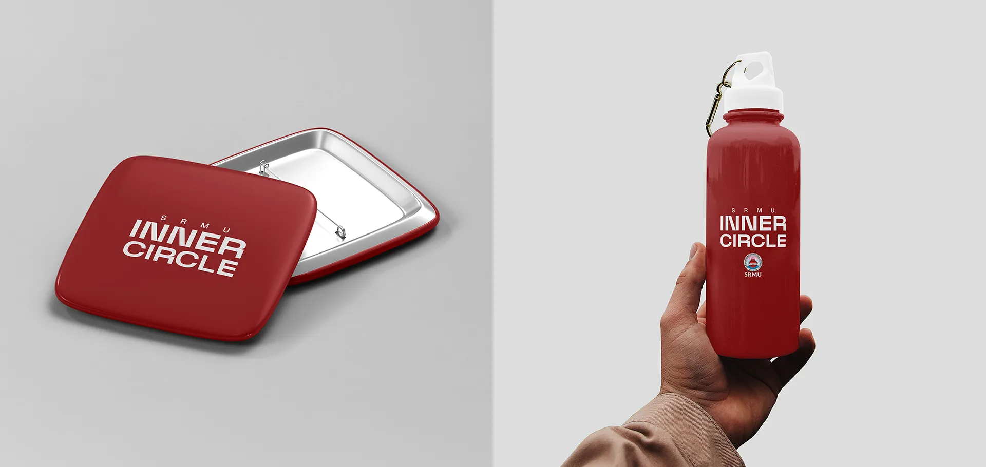 Designed exclusive SRMU Inner Circle logo and merchandise to give ambassadors a recognisable, cohesive identity during campus events, content shoots and official representation.
